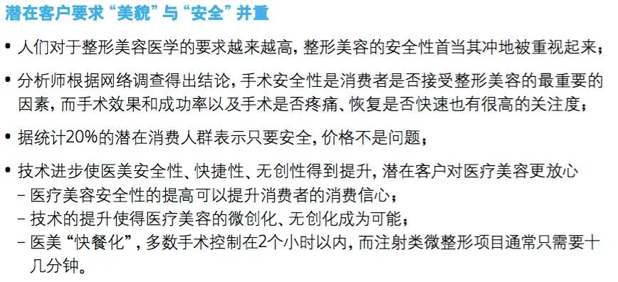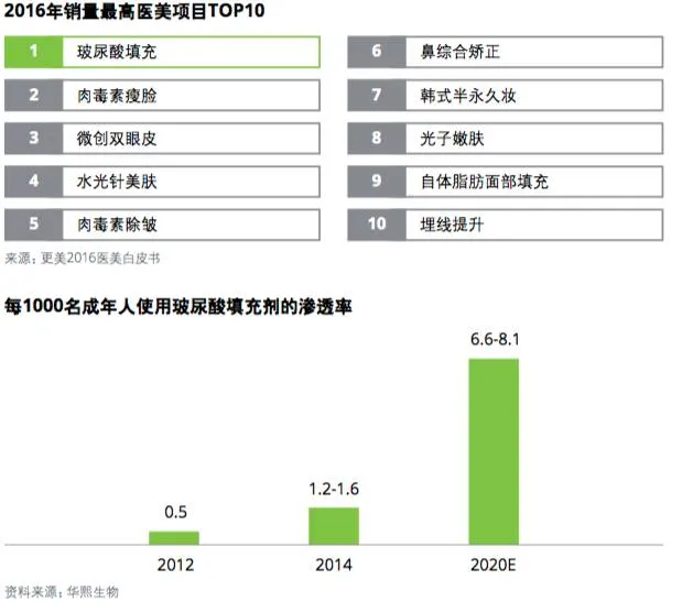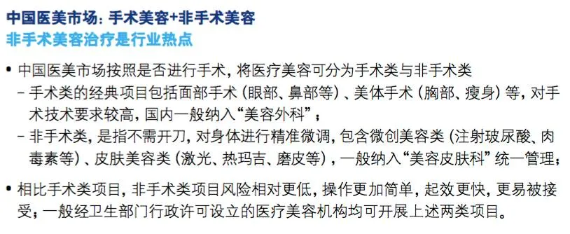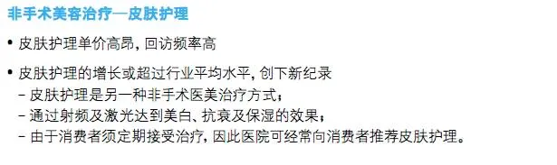 非手术类美容治疗,主要以玻尿酸、肉毒素及皮肤护理项目成为未来行业热点。
