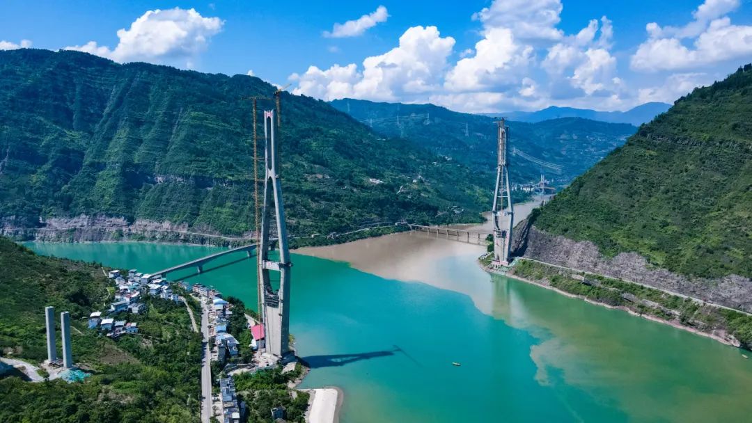 沿江高速新市金沙江特大桥主塔顺利封顶