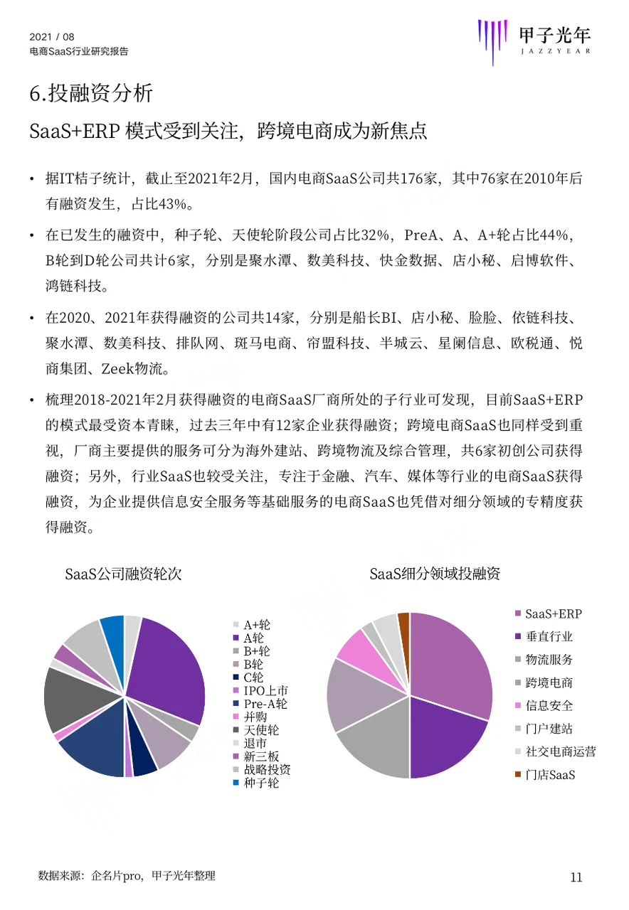 无论你是创业者、投资者、公司中高级管理者,还是相关政策制定者,我们都向您推荐这份科技领域全面详细深入的洞察分析——《2021电商SaaS行业研究报告》。*报告获取方式:点击“阅读原文”跳转至甲子光年官网,注册登录后,即可下载完整版报告。如需对报告内容勘误或有合作需求,请扫下方二维码添加微信: