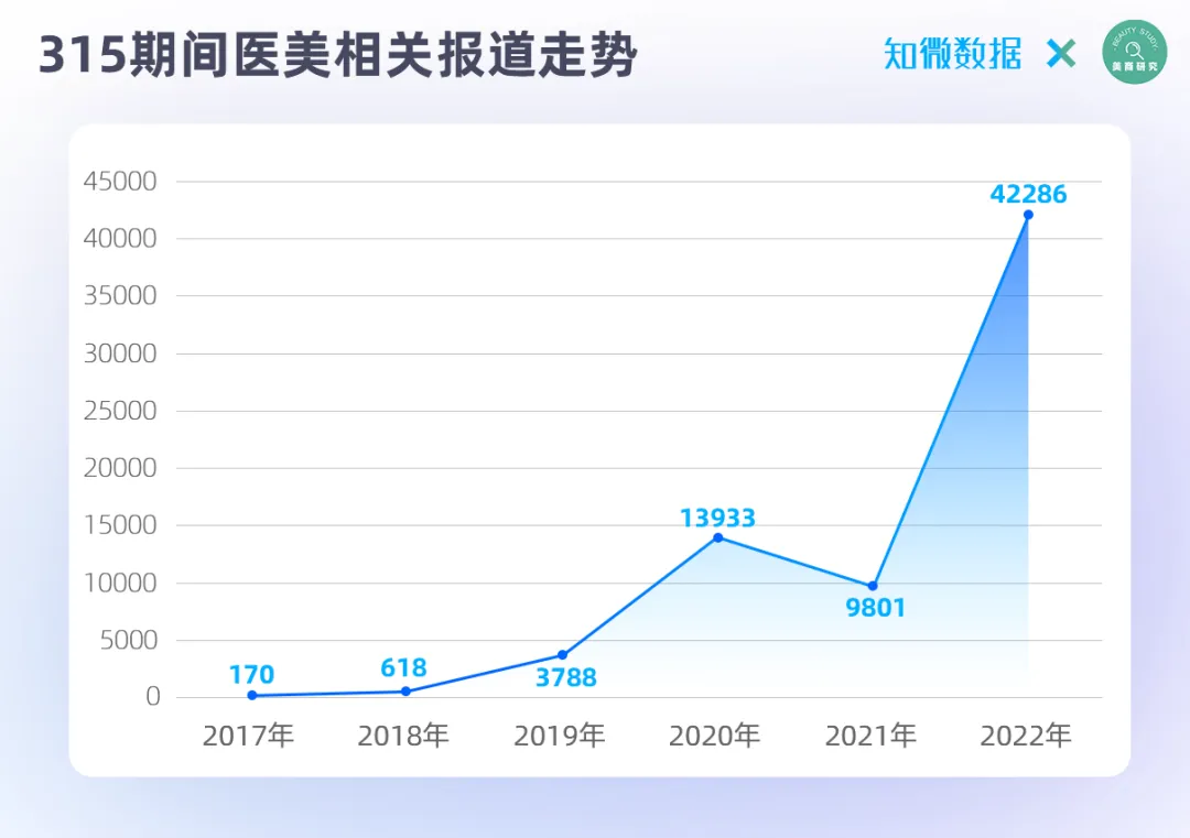 根据美商研究院和知微研究院调查发现,今年Q1全网医美相关报道声量达到390789篇,也呈现了下降趋势。