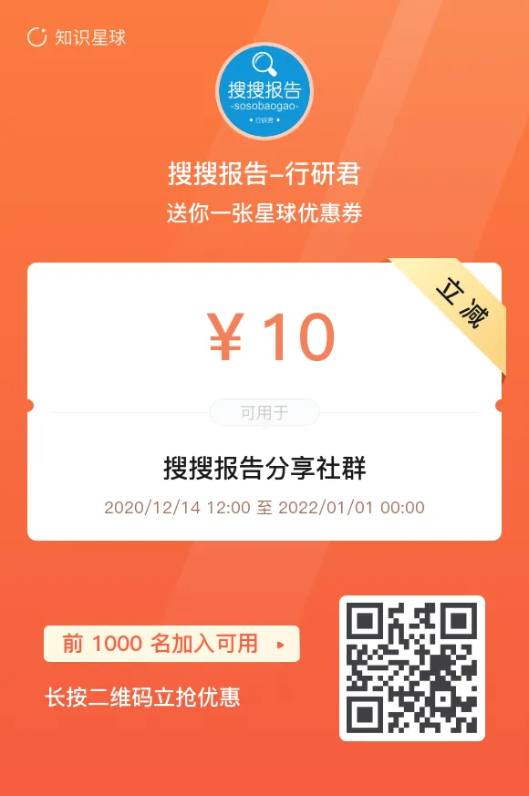 现在加入即刻获得以上所有报告。另外我还为公众号粉丝准备一张优惠券,新人先领券再加入可享立减十元。