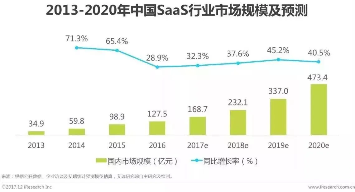 1. 2017年国内SaaS行业市场规模为168.7亿元,增长率为32.3%,未来几年仍将保持30%以上的增长率。