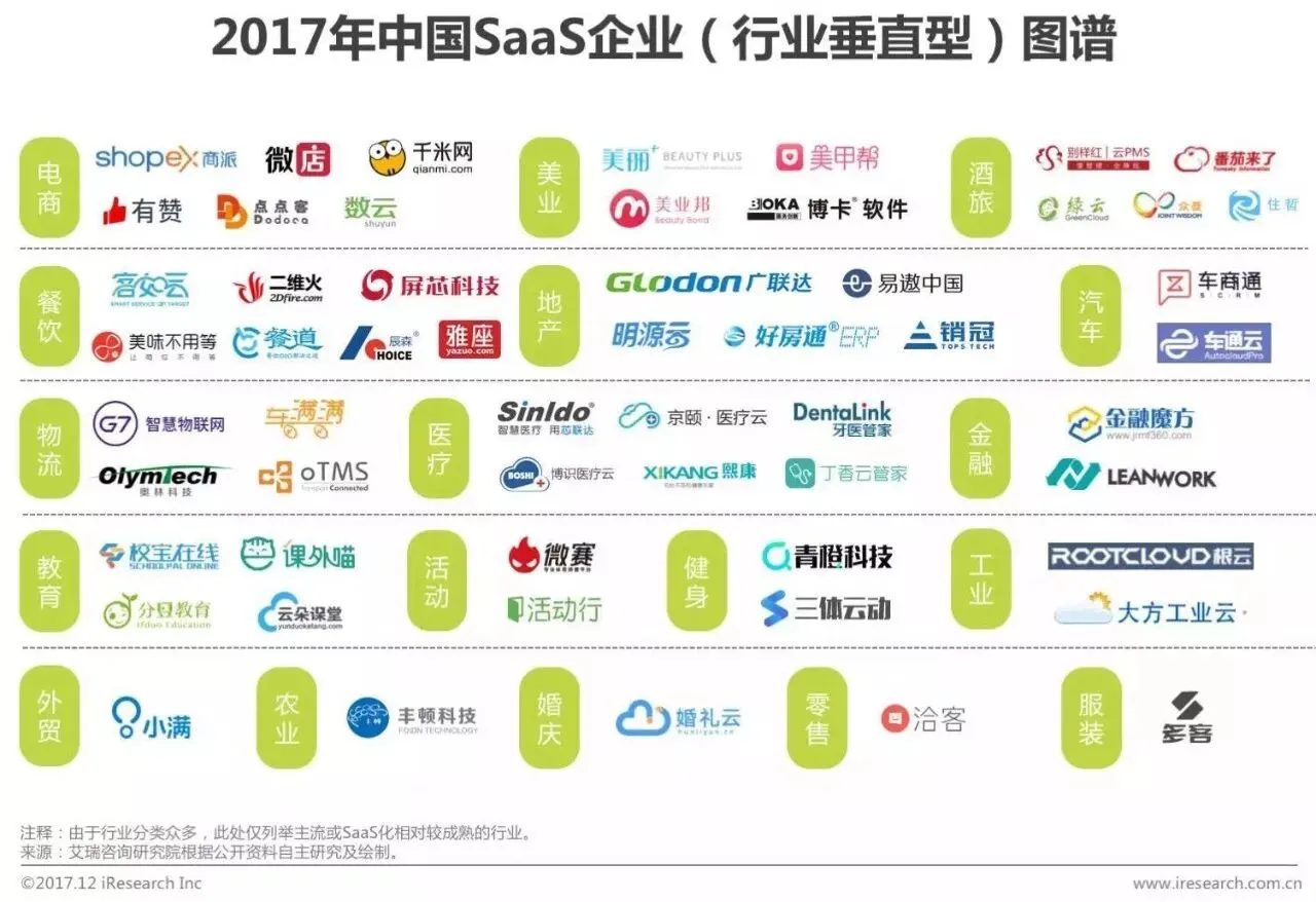 目前来看,企业级SaaS在社会化程度较高的行业中,如餐饮、零售、美业、酒旅、物业管理、售楼、广告营销等,成熟度相对较高。这些直接toC的行业在业务环节上相对更加快捷和标准化,也更加适合早期标准化SaaS产品的切入。处于价值链中间环节的物流、外贸、采购、工程施工等行业,在下游环节的带动下,也陆续迈出了互联网转型的步伐,正处于发展勃兴期。