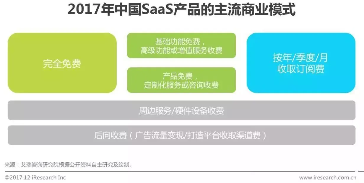价格上的不断让步最终催生了免费模式,动摇了作为SaaS产品商业根基的订阅模式,引发了行业内的大量争论。诚然,免费模式作为“噱头”有利于前期吸引用户,迅速做大用户量。很多声称产品免费的企业实际依赖增值服务、周边服务、硬件设备等途径获得收入,但在国内目前的市场情形下,如果没有强大的资金支持,没有足够壮大的用户群体带来足够多的流量,单纯依靠此类增值或周边服务支撑企业运营发展将步履维艰。
