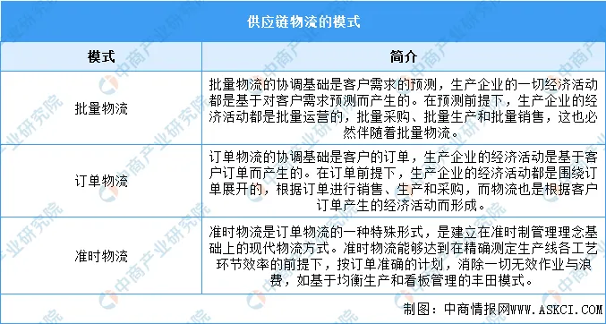 根据协调运作生产、供应活动、销售活动和物流活动的机能的差异性,可以把生产企业供应链物流归纳成三种模式:批量物流、订单物流和准时物流。