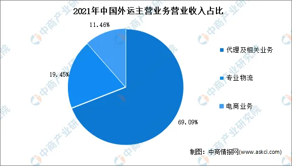 从主营业务来看,2021年中国外运代理及相关业务、专业物流、电商业务的营业收入分别为859.09亿元、241.83亿元、142.53亿元,分别占主营业务收入的69.09%、19.45%、11.46%。