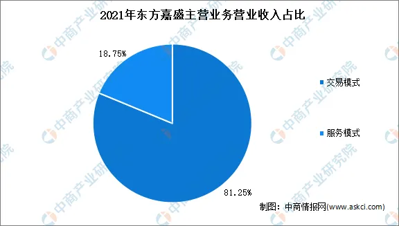 从主营业务来看,2021年东方嘉盛主营业务包括交易模式、服务模式,其营业收入分别占主营业务收入的81.25%、18.75%。