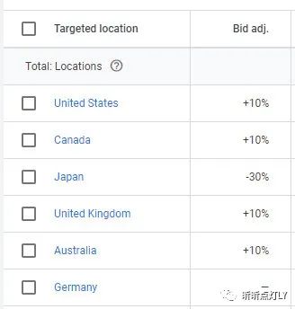 所以在上品牌词时,我就把不太可能购买的国家的出价降到-90%,甚至是直接排除掉。