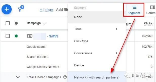 如果你在上广告的时候,有选择投放到Google搜索以外的平台,通过细分把投放网络的数据给调出来。