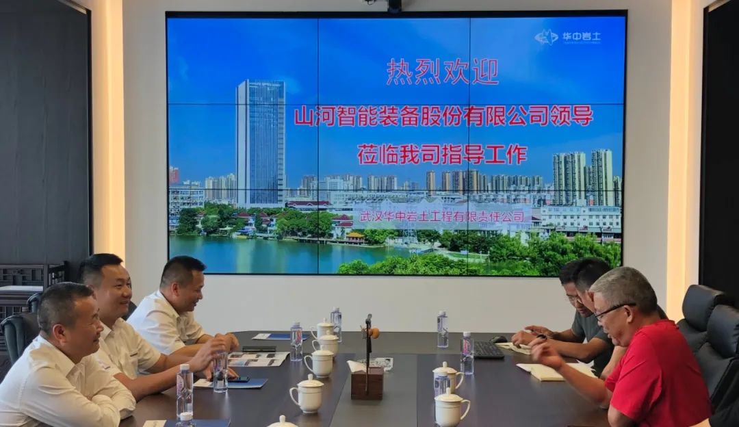 2023年8月5日上午,山河智能装备股份有限公司总经理夏志宏携集团技术管理层一行到访我司,我司总经理操经伟、后勤部经理张俊、市政公司总经理孙国强、副总经理严虎热情接待,并与之进行了深入的交流与探讨。