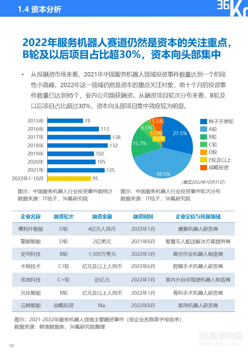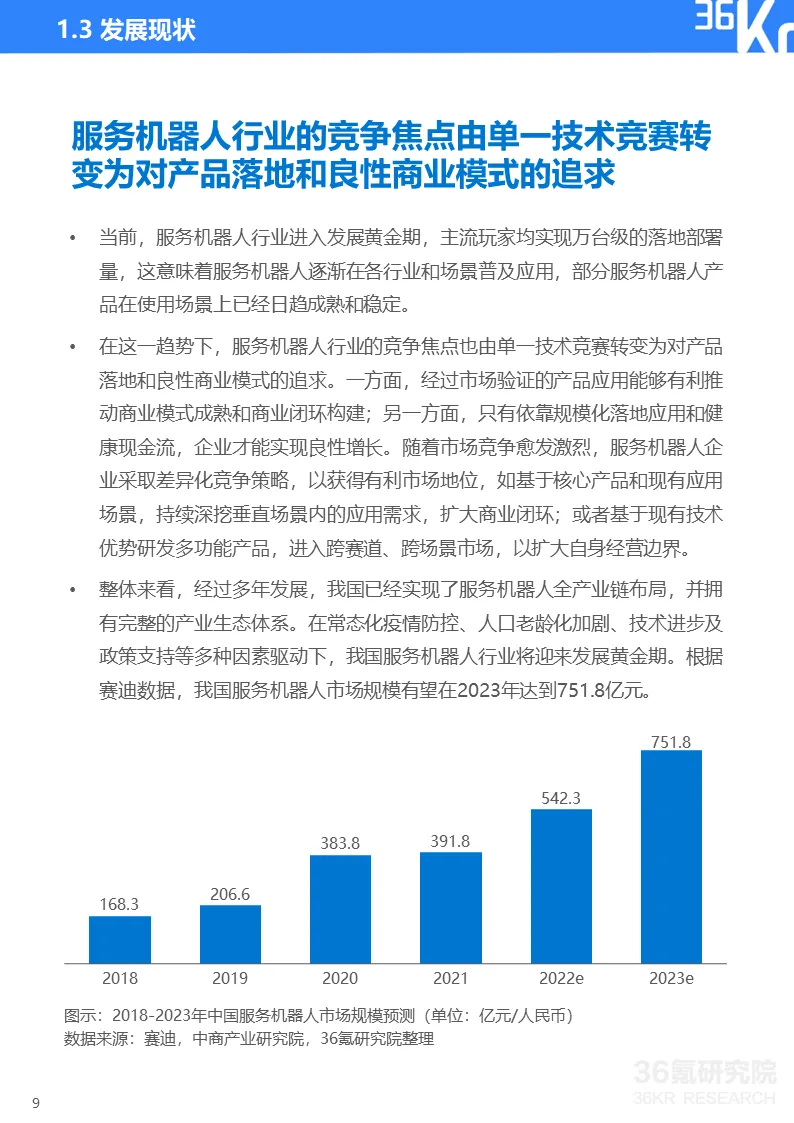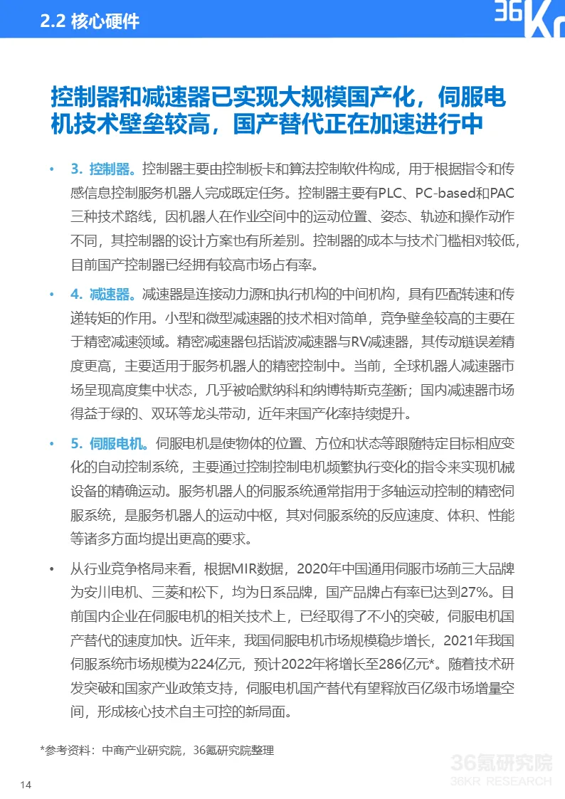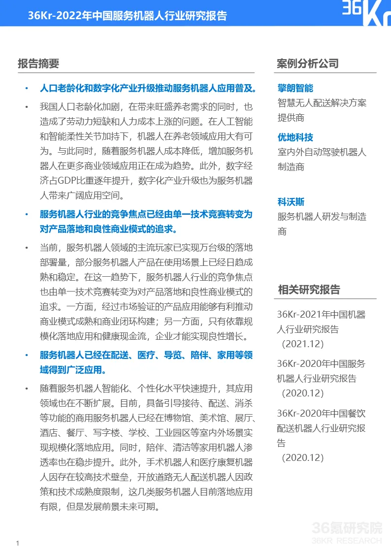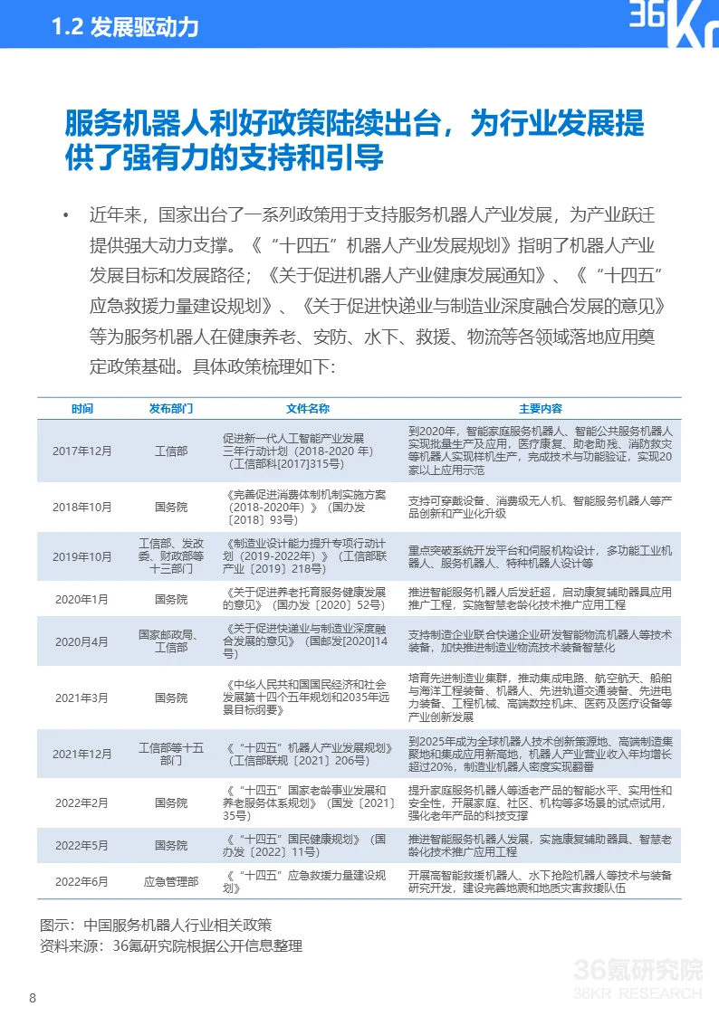 更多精彩内容,请关注“36氪研究院”微信公众号。如想获取《2022年中国服务机器人行业研究报告》,点击文章底部【阅读原文】,提取码:vqv5,或在36氪研究院微信公众号上回复“服务机器人2022”获取下载链接。