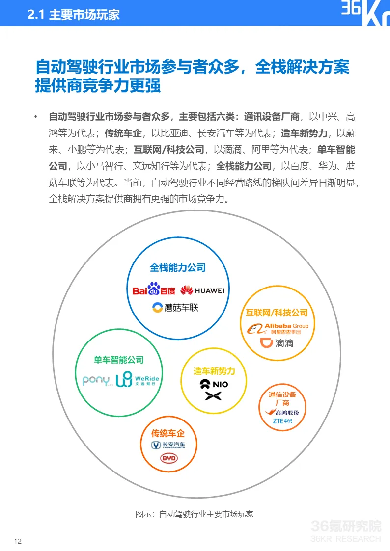 自动驾驶行业市场参与者众多,全栈解决方案提供商拥有更强的市场竞争力