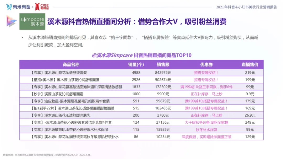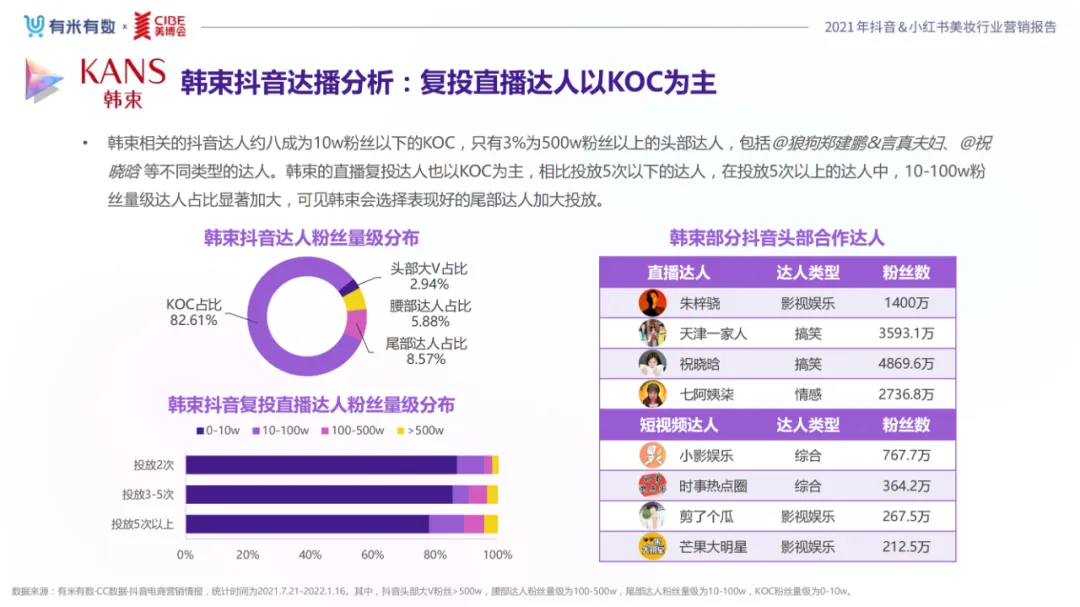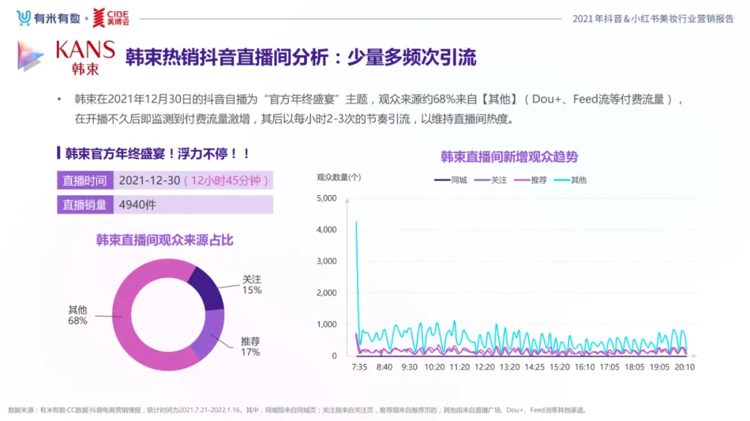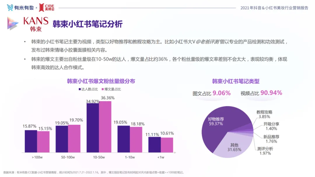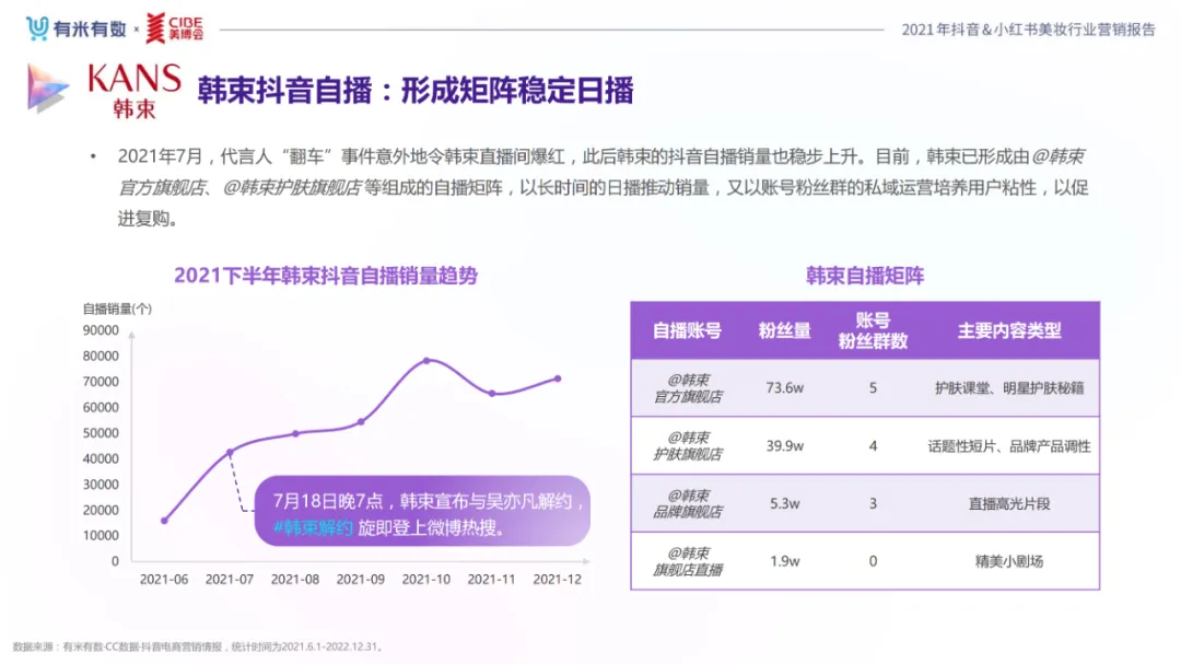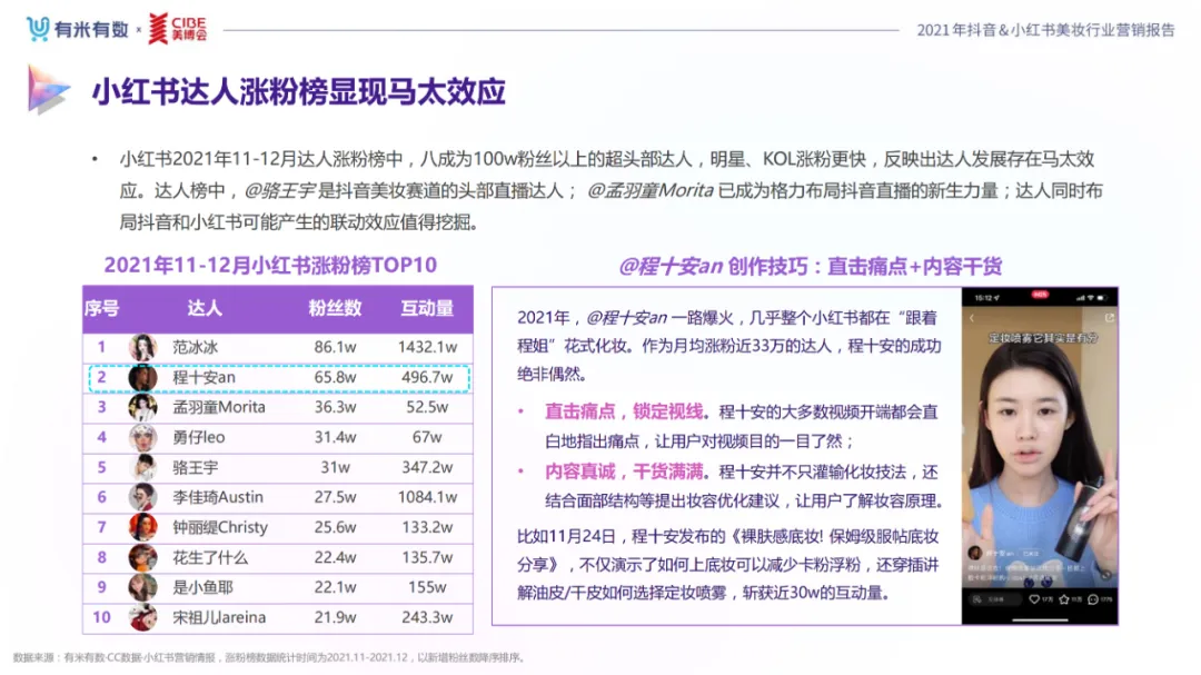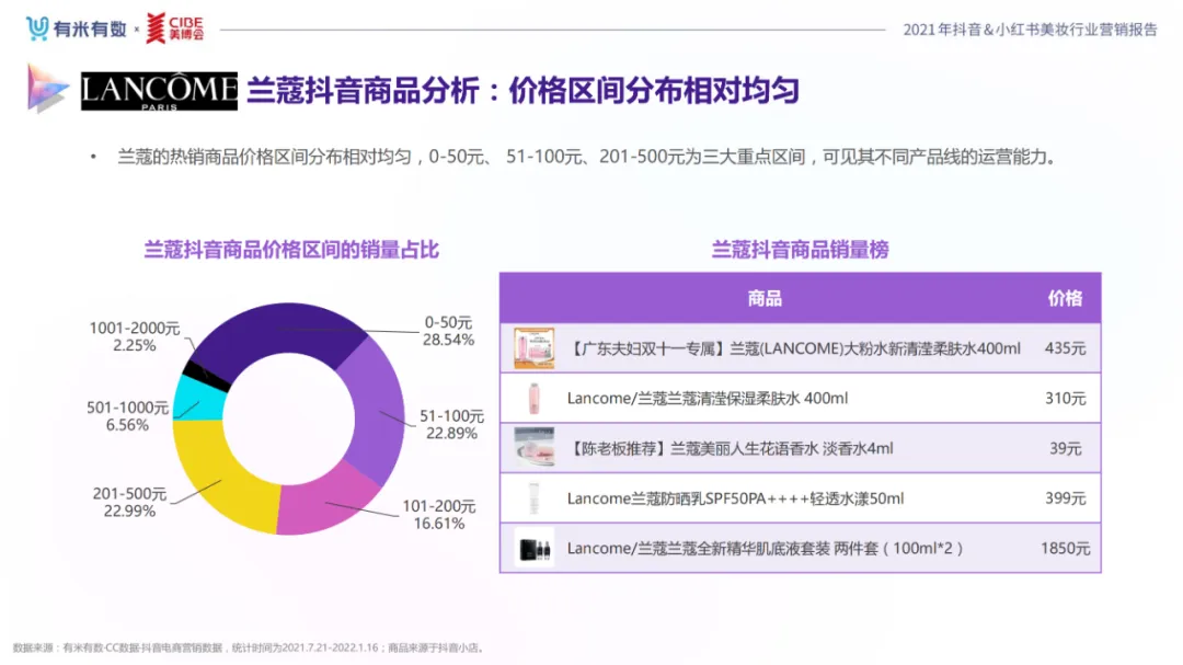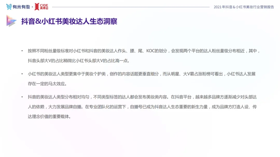 近年,中国美妆行业市场规模稳步上升,增长空间广阔的同时,竞争也愈发激烈,传统国货、国际大牌和新锐国货陷入混战。小红书和抖音是美妆品牌方的社媒营销重阵,在小红书种草后到抖音实现转化成为可行的爆品路径。基于上述背景,有米有数联合中国国际美博会出品《2021抖音&小红书美妆行业营销报告》,利用有米有数旗下产品快选品、CC数据的海量抖音电商以及小红书营销情报,提供行业大盘趋势、热门单品赛道以及内容营销洞察等大数据情报。