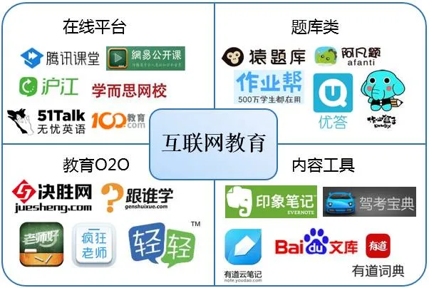 在当前复杂的互联网教育市场中,主要以四种类型的在线教育模式为主。分别是以网校、在线课程为主的平台型,主要以在线课程服务为主。而题库类的在线教育软件则主要集中在学生的课下的辅导与提高,以阿凡题、作业帮等为代表。教育O2O则是在最近风头正劲,主要集中在家教上,用户通过平台预约,匹配更合适的家教类型。而内容工具分类则显得实用性更强,其中包括职业技能类学习软件、聚合类的词典,具有学习功能的笔记等,也是在移动端下载量最高的学习软件。