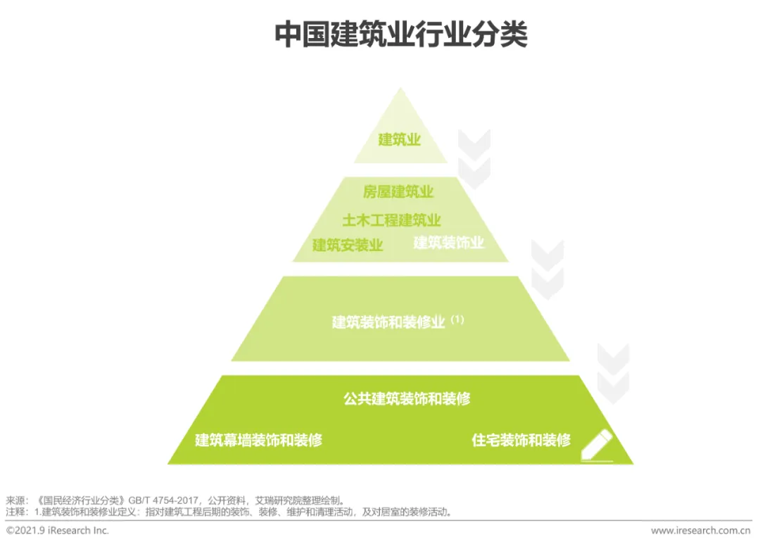 住宅装饰和装修行业属于建筑装饰业下的细分子行业,主要作用在于美化居住环境和提高住宅功能性,在同一住宅生命周期内可发生多次装修行为,使得家装行业具备可持续性的特点,市场空间巨大。中国建筑装饰协会统计数据显示,2020年中国建筑装修行业企业数量为10.6万,呈逐年递减态势,退出市场的企业以低资质小公司为主;但与此同时家装企业集中度极低,龙头企业营收均未过50亿,市占率都低于1%。究其原因,家装行业服务端从早期的施工队、设计工作室,发展至装修公司,期间产生了升级更迭但绝非完全替代。时至今日,传统家装企业数量多且较为分散,区域型特征明显,缺乏统一的标准化施工流程,导致行业集中度较低。