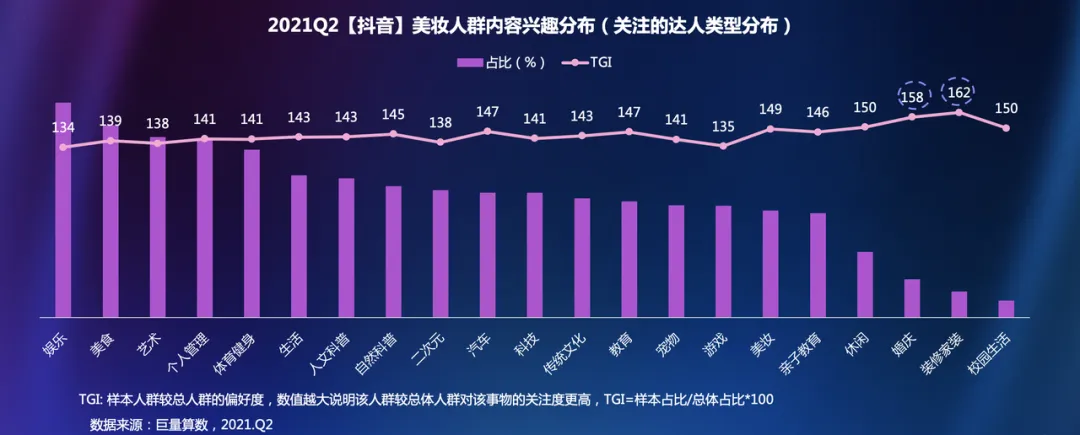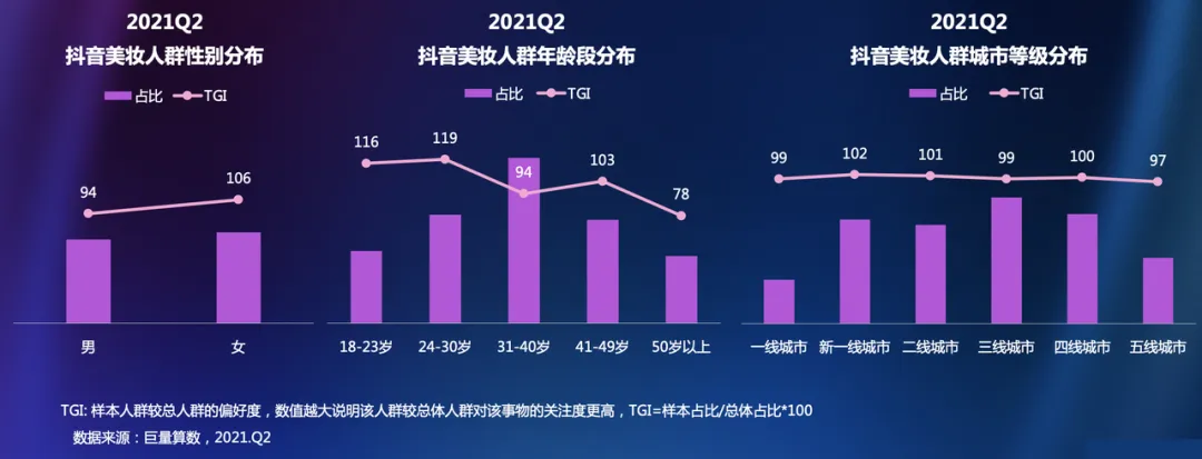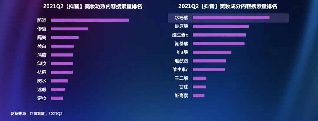 科技推动美妆行业变革,新成分、新功效的不断推陈出新,科学的医学诠释让美妆更加安全、值得信赖,新媒体的多样化也让消费者对美妆了解更详细。因此,各大美妆品牌纷纷通过抖音等平台,以多样化的宣传模式,联合不同类型美妆达人,多方位展示产品,增大卖点。巨量算数发布《2021Q2美妆行业季度洞察报告》,该报告为季度性洞察报告,主要从美妆行业概况、美妆功效成分分析、美妆用户洞察、美妆热点趋势等角度展现美妆市场现状,洞察消费需求特征变化及未来趋势,希望为美妆行业从业者提供参考意见。
