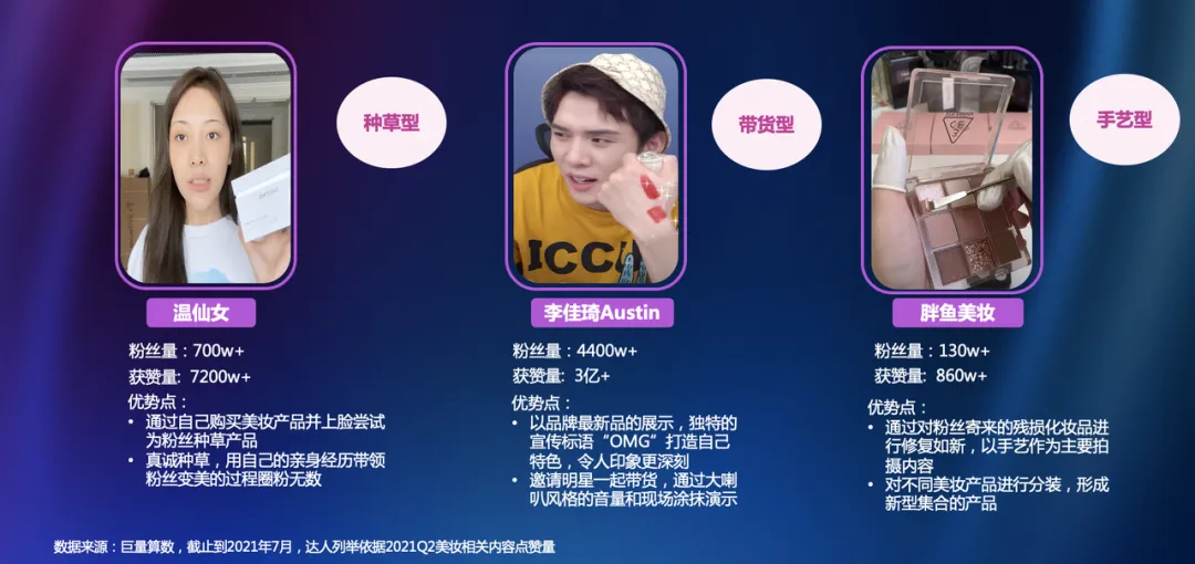 美妆达人优秀案例 美妆达人内容种类增多,真诚实践的种草、带货增加消费者信任程度,获得更多点赞和粉丝。