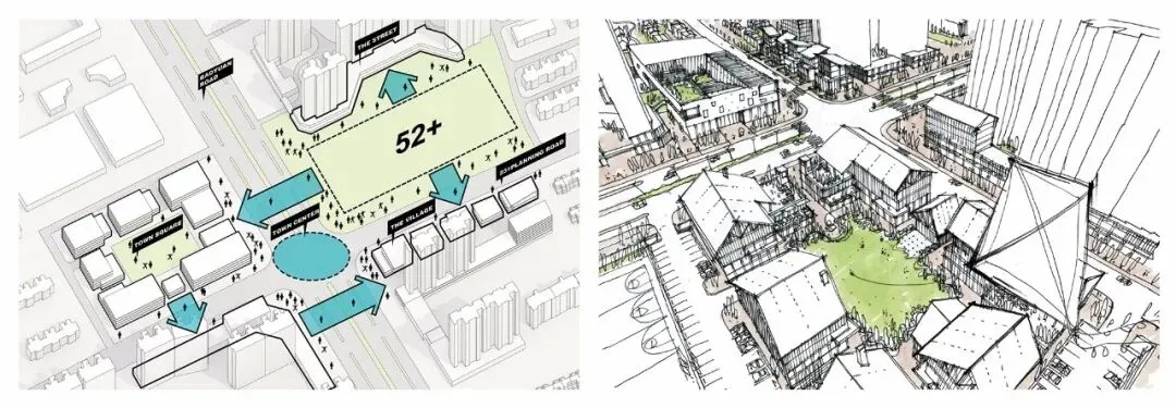 3、建筑的边界需要与城市对话,沿街体量的进退可以创造出更多的宜人尺度空间。