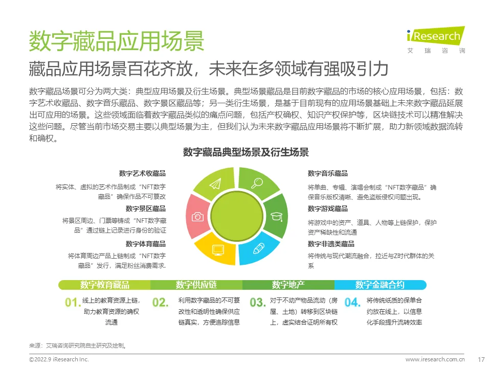 •应用场景:国内数字藏品应用场景以典型场景为主,未来应用场景将不断扩展,助力藏品流通;