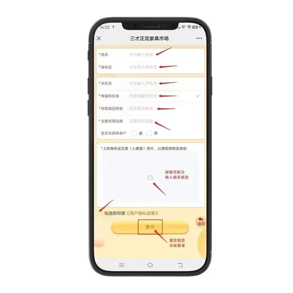 填写个人信息,上传身份证照片,点击“提交”即可