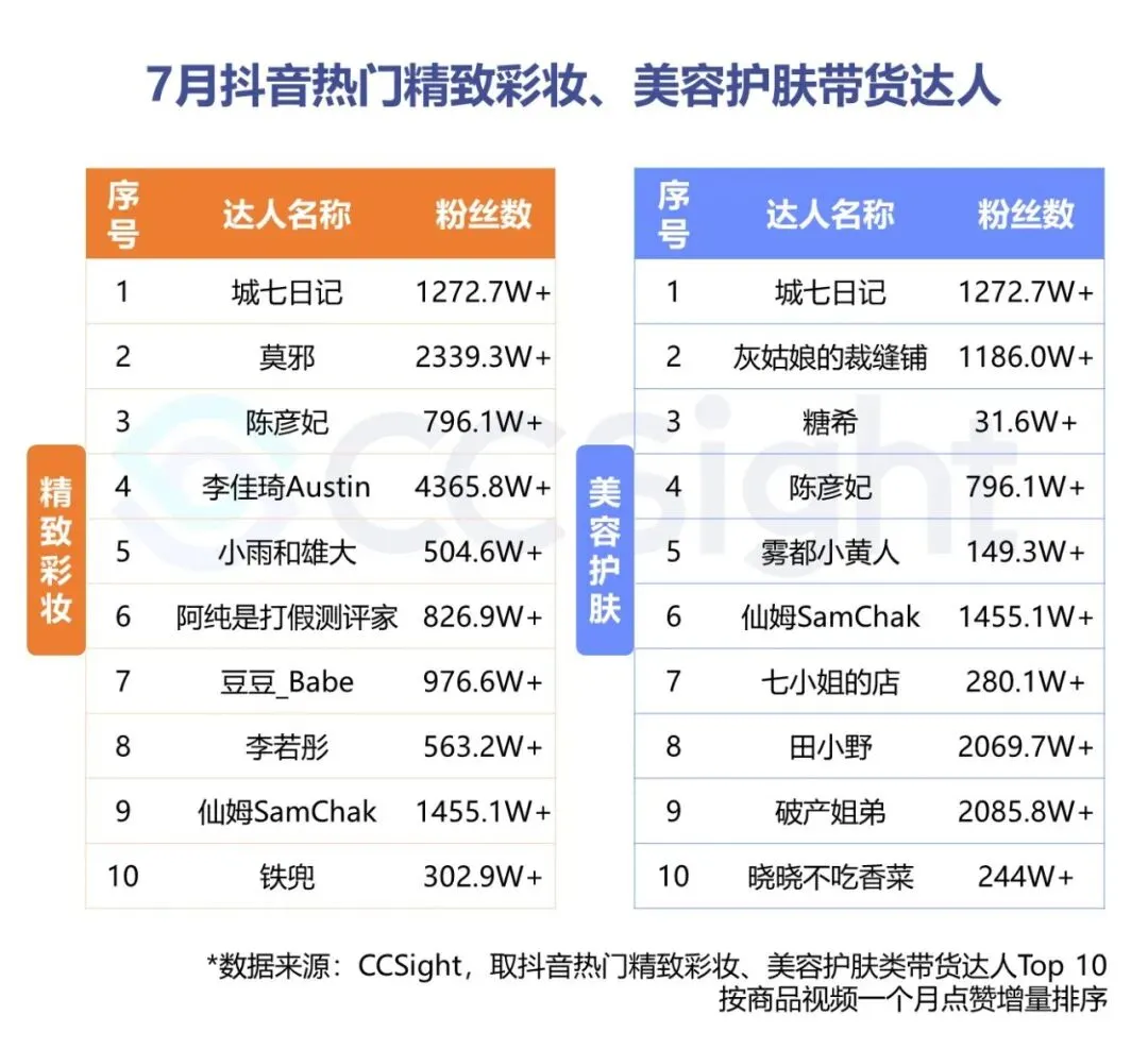 11. 7月份抖音热门精致彩妆、美容护肤带货达人