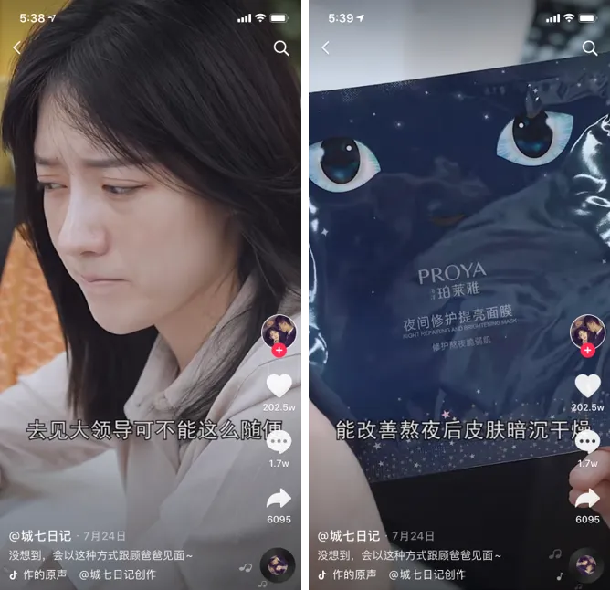 7月份@城七日记产出了一条点赞量高达202W+的短视频“没想到,会以这种方式跟顾爸爸见面”