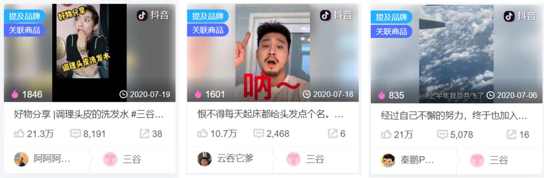 三谷洗发水联合多名不同领域的抖音短视频达人,打造了多个点赞过万的爆款短视频。