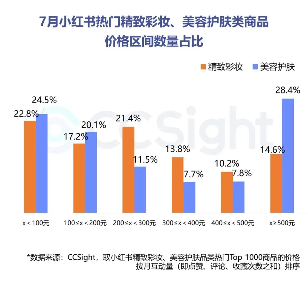 3. 价格超500元的美容护肤类商品在小红书更受关注