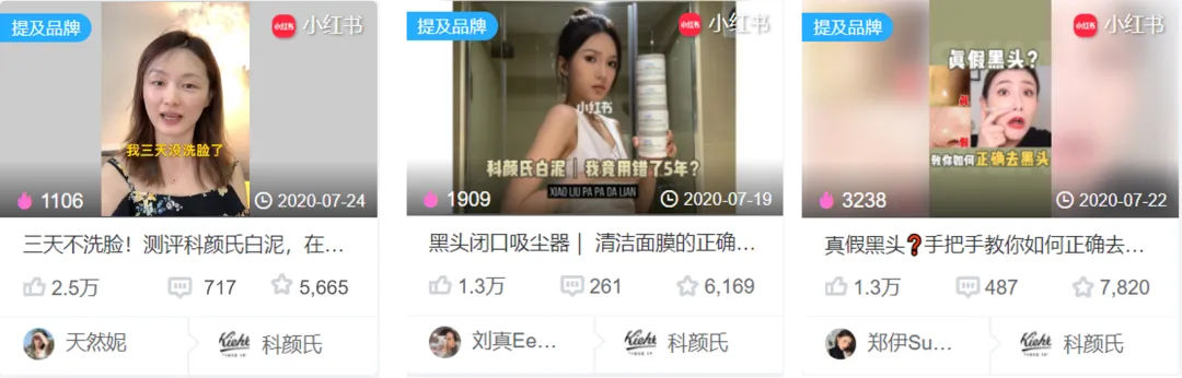 科颜氏白泥产品在7月一共有3条视频内容点赞上万,而且种草它的博主粉丝数都挺高的。