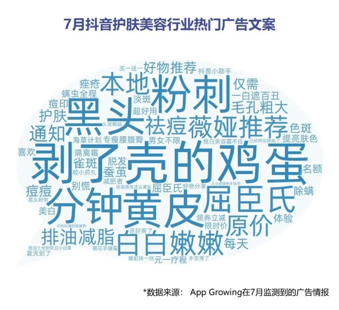 抖音广告文案紧抓用户的皮肤痛点“粉刺”、“黑头”,以及希望皮肤变得像“剥了壳的鸡蛋”般“白白嫩嫩”的愿望。