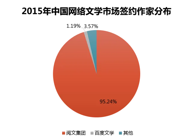 中国当下的网络文学作家分布呈现出极不均衡的局面,95.24%的网络文学作家来自阅文平台,百度文学的签约作家占总体的3.57%,其他平台作家共占1.19%。