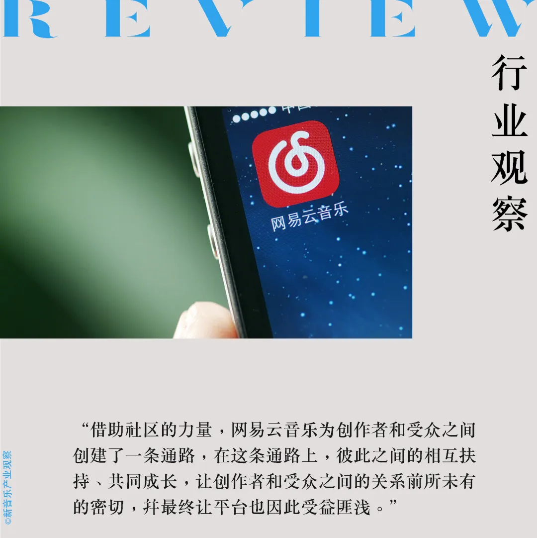音乐社区的特殊性在于,音乐具有更高的情感粘度,创作者和粉丝之间一旦关系建立起来,就会相对比较稳固。借助社区的力量,网易云音乐为创作者和受众之间创建了一条通路,在这条通路上,彼此之间的相互扶持、共同成长,让创作者和受众之间的关系前所未有的密切,并最终让平台也因此受益匪浅。