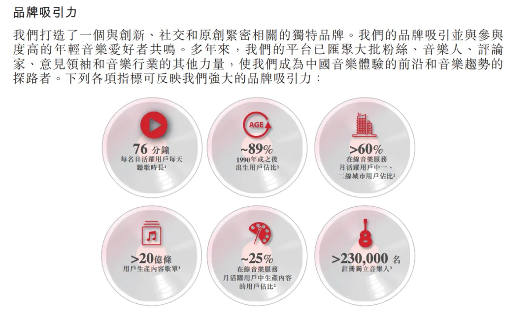 据灼识咨询的调研,网易云音乐是1990年或以后出生人群中最受欢迎的在线音乐平台,这部分人群也占中国在线音乐市场的50%以上,并且还在持续增长。此外,在年轻音乐人方面,网易云音乐去年发布的《中国音乐人生存现状报告(2020)》显示,95后00后音乐人占比71%,越来越多年轻音乐人在网易云音乐走向专业音乐道路。