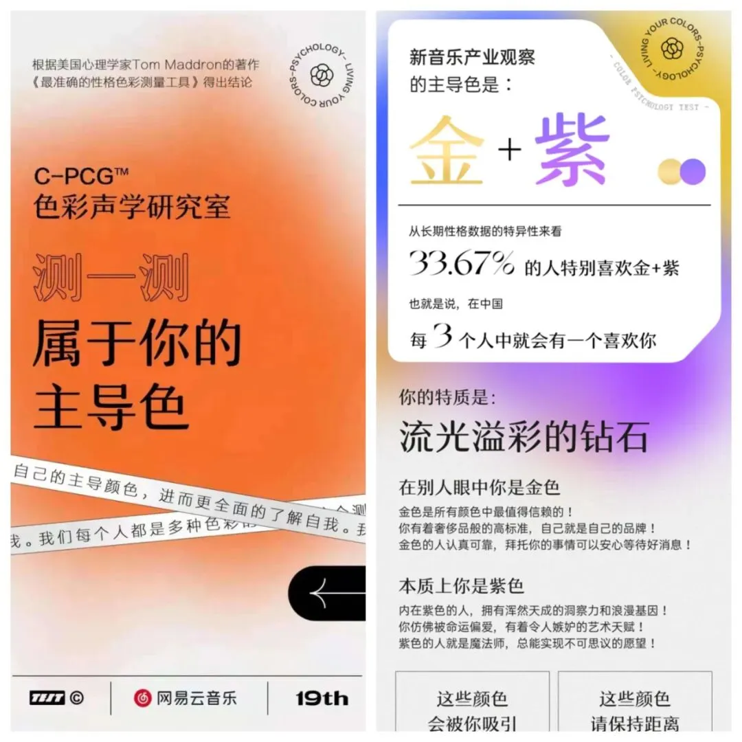 就在招股书提交的同一天,主要面向年轻用户群的“网易云人格主导色”测试刷爆了全网,在微博、知乎、B站和抖音等平台上都成了热门话题,并引发了用户的二次创作狂欢。
