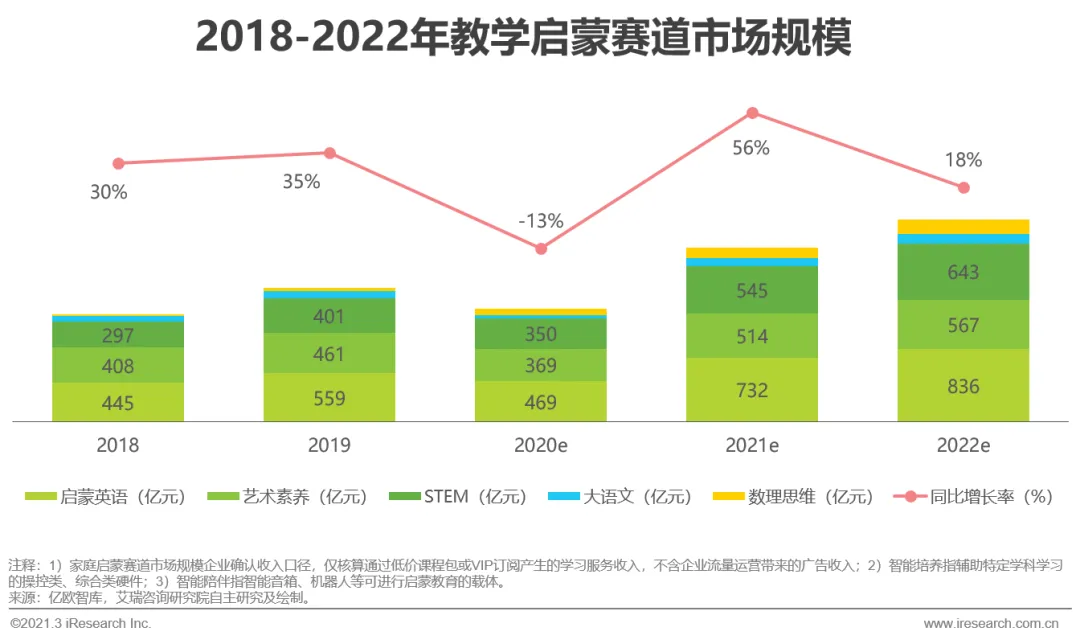 2020年启蒙教育市场规模达千亿级,学科教学启蒙占主导