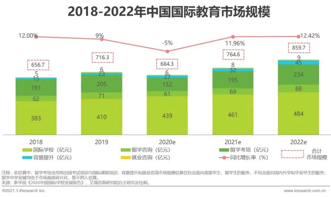 传统赛道:含国际学校、留学咨询、留学考培,仍是市场的主要组成部分,疫情前已进入相对平稳的增长阶段;