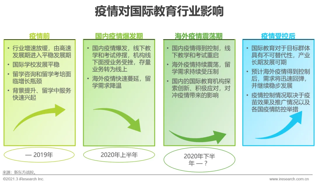 疫情对国际教育行业的压力将逐步减小,海外疫情平稳后市场将迅速回弹、稳步发展