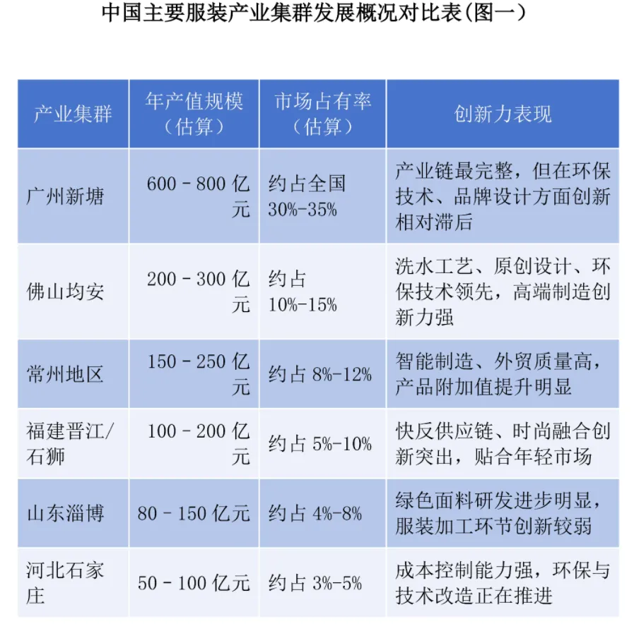 一、中国牛仔服产业集群规模、市场占有率与创新力分析