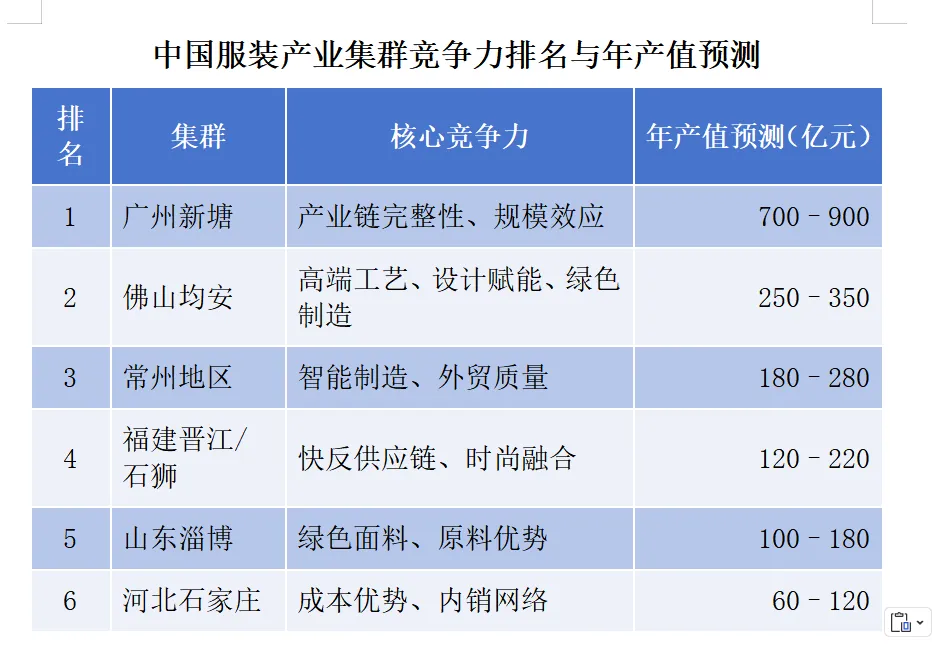 二、2025年中国牛仔服产业市场规模及各产业集群竞争力排名预测