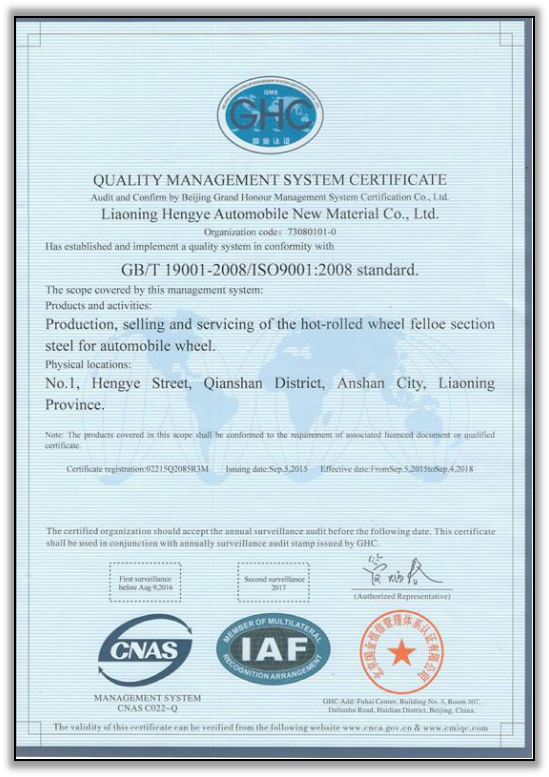 辽宁衡业汽车新材股份有限公司于1997年兴建,是一家以生产工程机械底盘件、商用汽车底盘件为主的大型民营企业,是修订商用车车轮用轮辋型钢、挡圈型钢行业标准的专业生产厂家。公司坐落于鞍山市经济开发区,占地面积14万平方米。公司现有员工800人,各类专业技术人员150人,其中拥有高级技术职称30人。