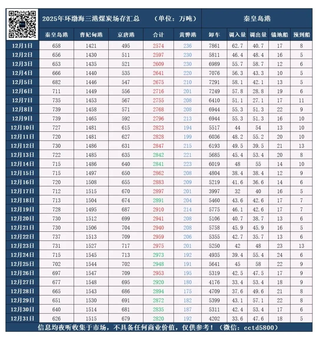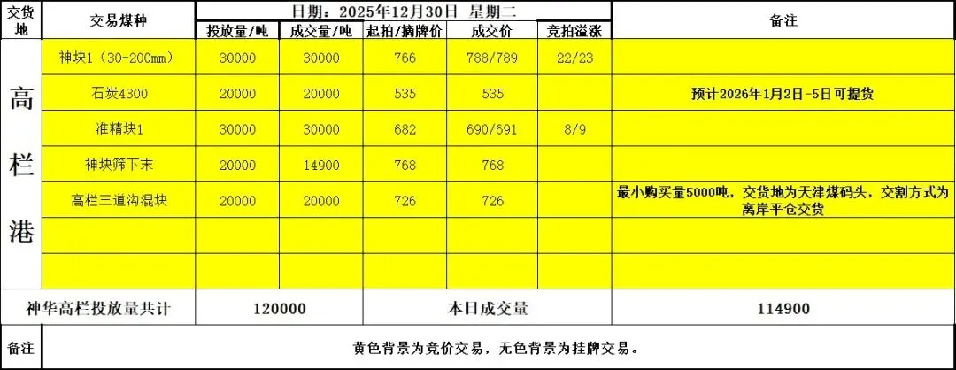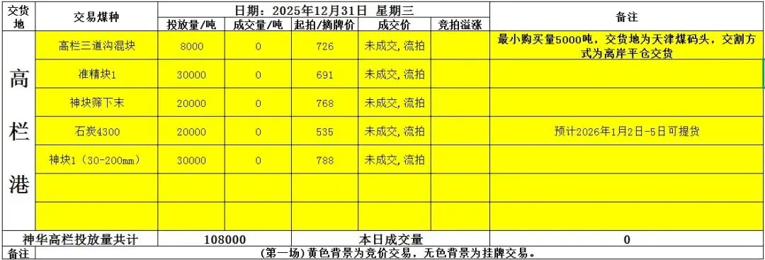 【神华高栏港竞拍以及珠电价格(2025年12月31日)】: