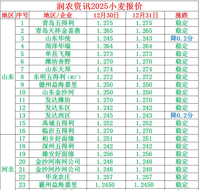 因为收集厂家报价原因,小麦价格有小幅度偏差,以上价格表仅供大家参考!