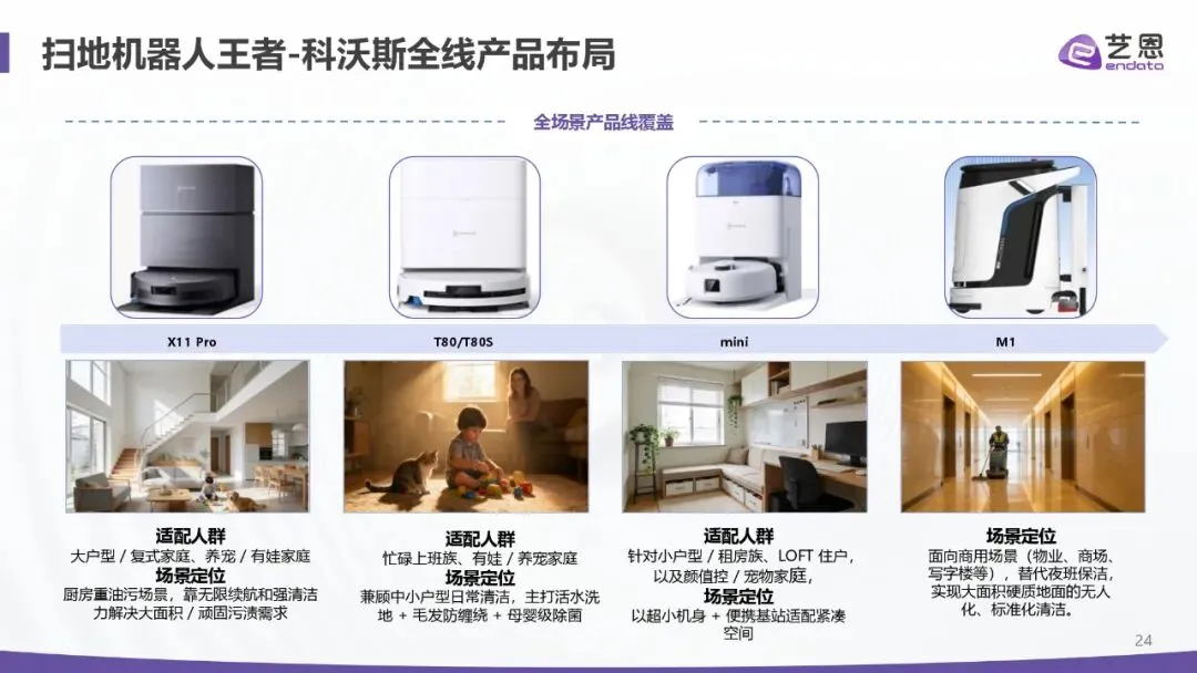 基站全能化:自动集尘 / 洗拖布 / 烘干 / 上下水 / 加清洁液 / 除菌成标配,追觅 Matrix10 Ultra 实现智能换拖布分区清洁。 机械臂与形态突破:五轴折叠臂可挪开拖鞋、电线等障碍物;超薄机身(≤8cm)进入床底 / 沙发底,履带拖布覆盖率较滚筒提升约 15 倍。 跨场景拓展:追觅 Cyber X 的仿生履带爬楼系统可越 25cm 台阶,解决复式清洁痛点。