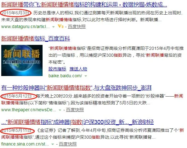 前段时间,A股在新闻联播中的亮相,被视为市场转暖的信号。小编之前听说过一个“炒股神器”,就是从新闻联播衍生出来的,叫“新闻联播情绪指数”。最强大的事迹是在A股大热的情况下,“精准地”预测了2015年5月5日大跌。然而,搜了搜这个指数最近的消息:
