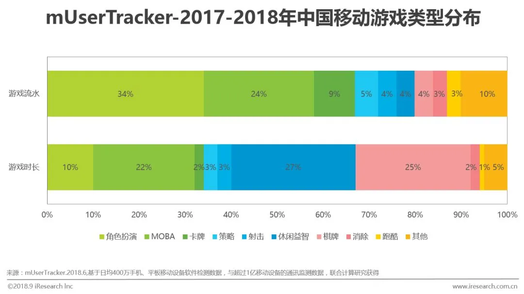 ▌2018年中国移动游戏类型流水分析