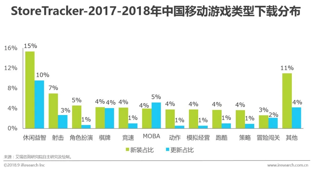 ▌2018年中国移动游戏类型下载分析