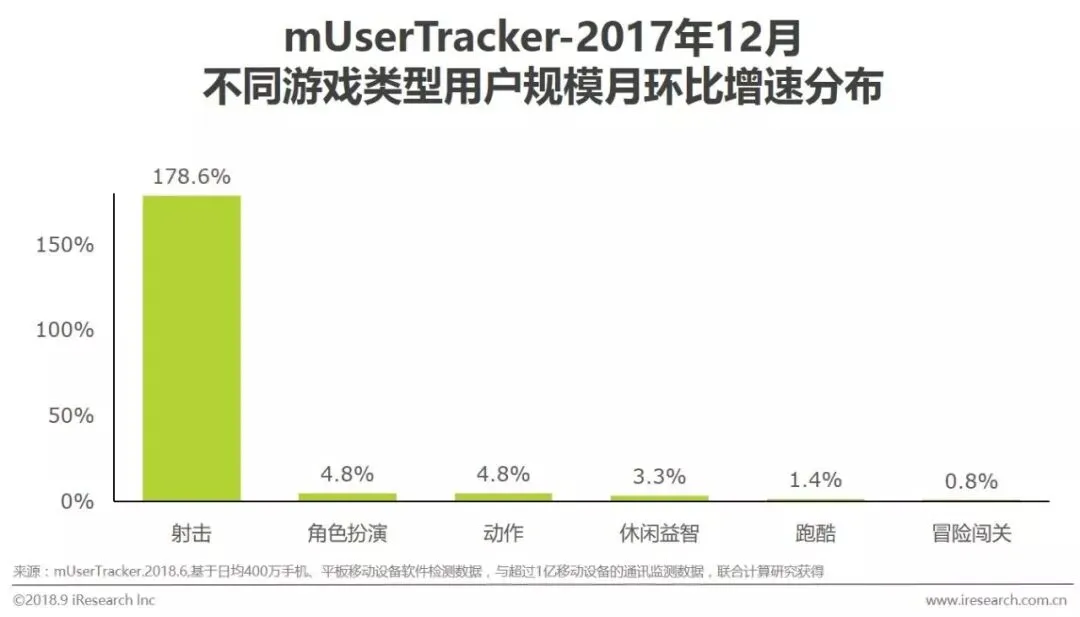 ▌2018年中国移动游戏类型增速分析