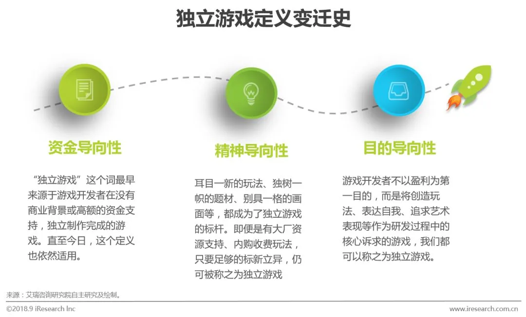 独立游戏商业化是必然趋势,所以导致现在要定义一款独立游戏非常困难,甚至有一些商业游戏经过包装,以独立游戏的姿态出现。聚焦移动端,独立游戏数量激增,但“叫好又叫座”的优秀产品仍屈指可数。独立游戏正处于高速的发展之中,然而未来的发展趋势仍不明朗,广大厂商仍在不断探索适合独立游戏的可持续发展的商业模式。艾瑞分析认为,现在中国独立游戏发展阶段与几年前欧美独立游戏行业类似,而如今欧美独立游戏行业已渐渐步入正轨。究其原因,不过是游戏开发者始终坚持初心,砥砺前行。