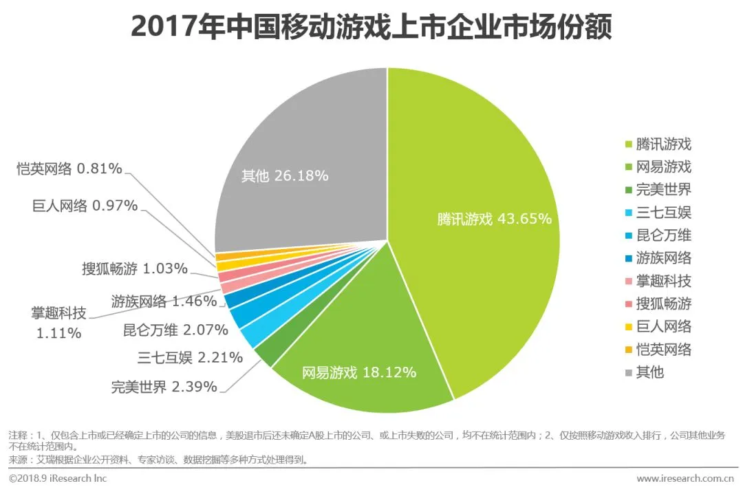 排名前5的企业市场份额均有不同程度的上升,其中腾讯的市场份额从37.8%上升至43.65%,涨幅最大。中小企业间的竞争将会更加激烈。