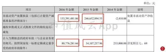 而在2015年和2016年,上市公司则靠政府补贴和卖资产支撑归母净利润。